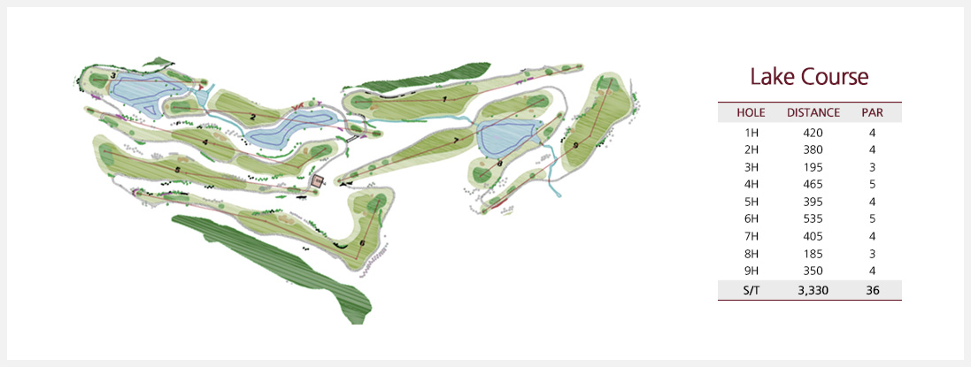 샷밸류Low/High Handicap 골퍼들을 모두 수용할 수 있는 50~110m 이상의 넓은 Landing Zone과 코스전장 7,010 yard로 호쾌한장타와 함께, 요소마다 긴장감을 갖게하는 폰드 및 벙커의 배치를 피해 14개 클럽을 모두 사용할 수 있는 코스설계