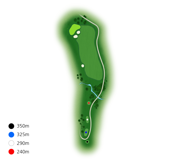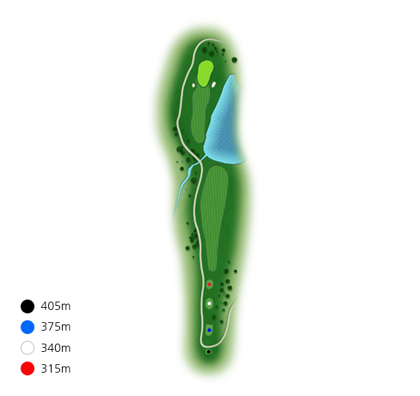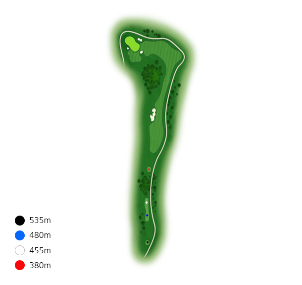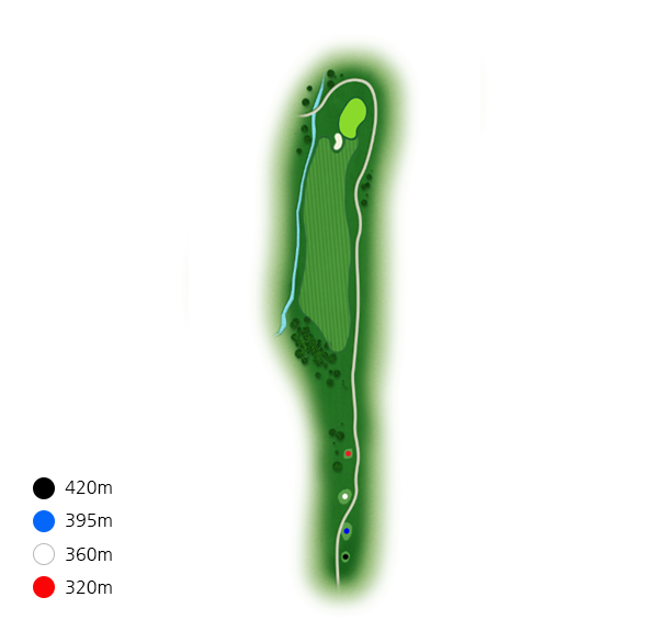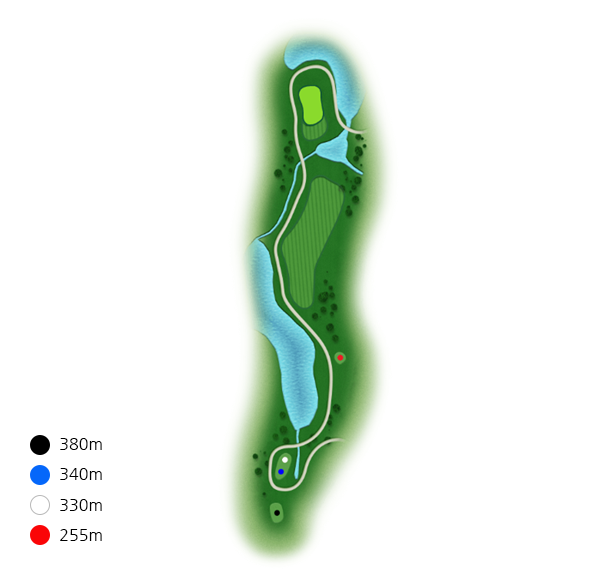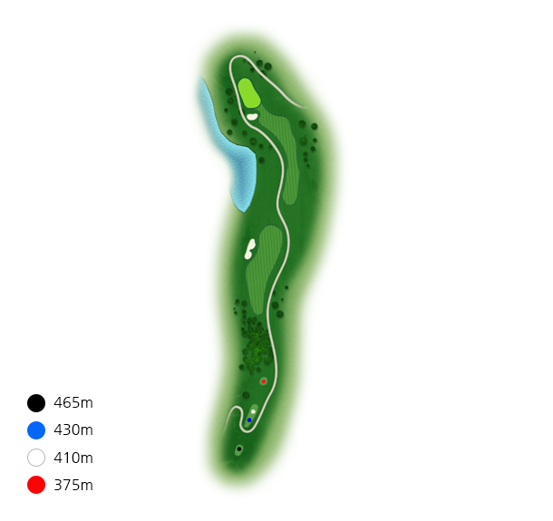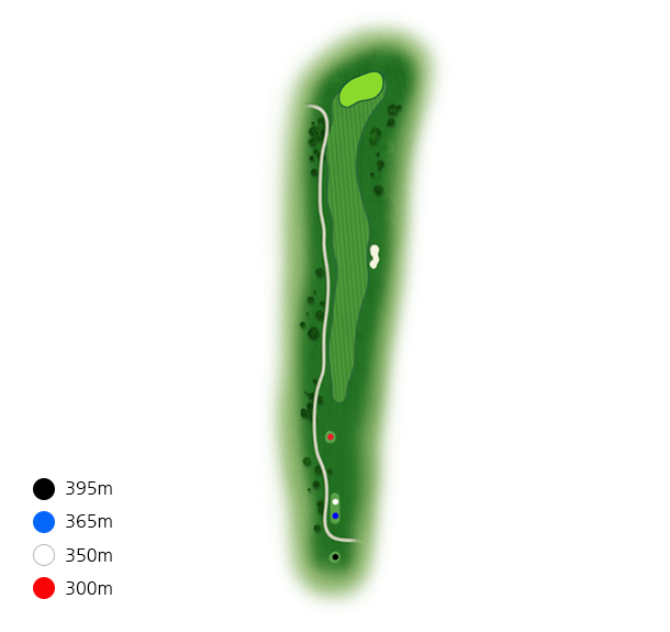 좌측에 큰 소나무들로 인하여 시야적으로 페어웨이가 좁게 보이기때문에 슬라이스에 주의해야 합니다.