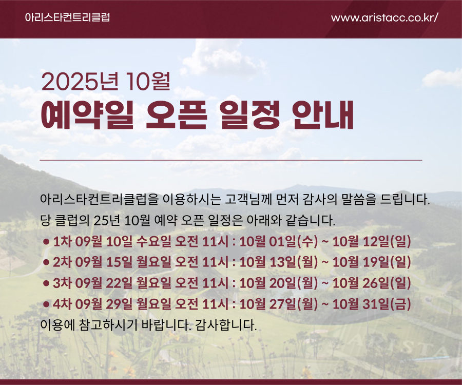 2025년 10월 예약일 오픈 일정 안내